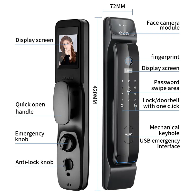 Çində kök salmış peşəkar ağıllı kilid istehsalçısı və təchizatçısı kimi PuXin, əlverişli qiymət üstünlükləri və əksər Avropa və Amerika bazarlarını əhatə edən ağıllı qapı kilidi sənayesində zəngin təcrübəyə malikdir. Əsas biometrik məhsul olan PuXin DF65 3D Üz Ağıllı Kilidi yüksək dəqiqlikli binokulyar infraqırmızı üz tanıma alqoritmi və yüksək keyfiyyətli səth emalına malikdir və effektiv kiliddən çıxarma, davamlılıq və antistatik performansı təmin edir.
